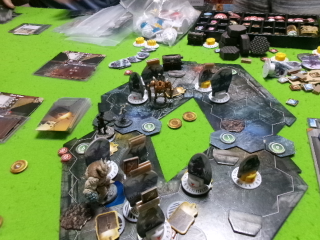 第14ラウンド、ノーマルカオスデーモン1体発生。ハロワーはフローズン・フィストに4ダメ、これはカード1枚捨ててキャンセル。メタルモザイクはカオスデーモンに10ダメ、黒インプに4ダメ。シャターソングは宝箱を略取、Detonatorの設計図。デスウォーカーは弱ったカオスデーモンにトドメを刺します。